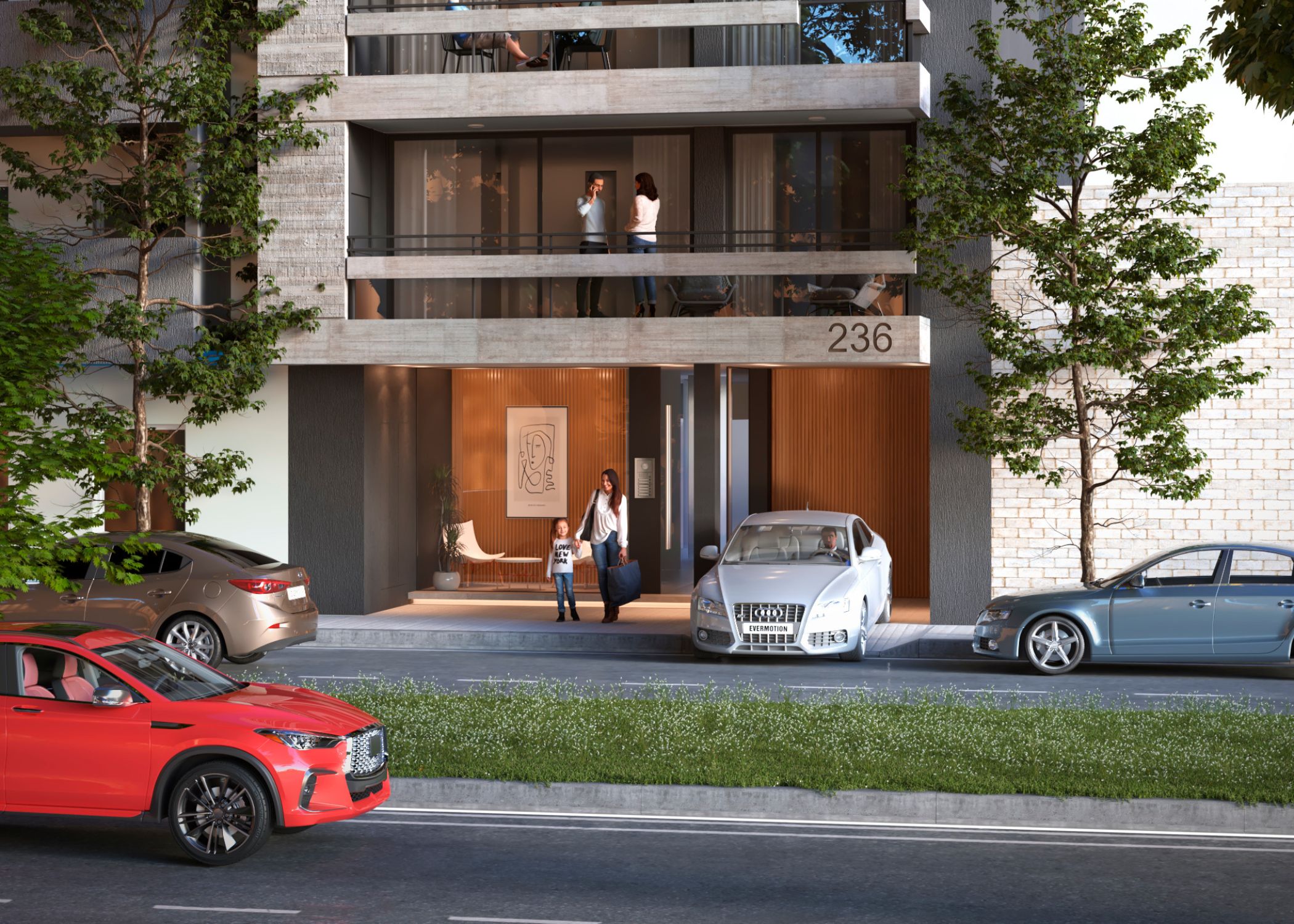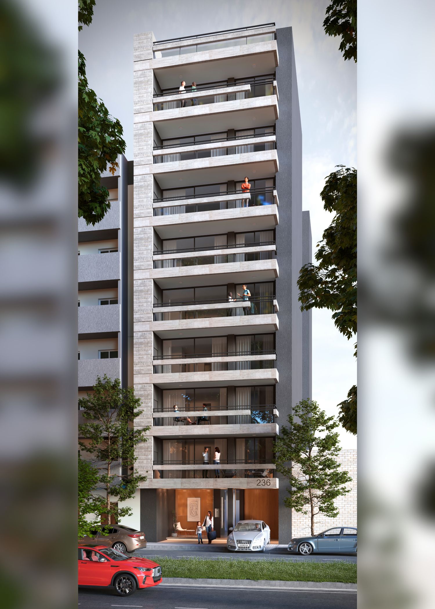 Edificio desarrollado en 8 Pisos con 16 Departamentos destinados a Vivienda Unifamiliar, más Planta Baja destinados al acceso de personas y cocheras.