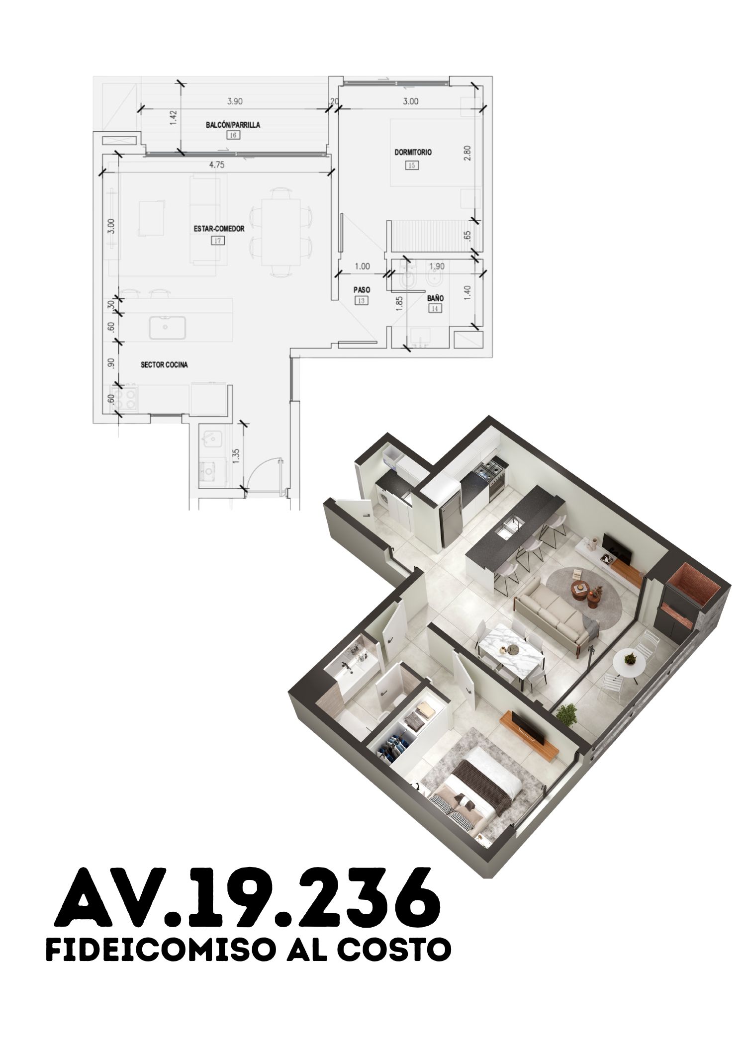 Los Semi Pisos de dos ambientes dispondrán de cómodo estar comedor cocina integrada y balcón terraza con parrilla, un dormitorio con placar, baño completo y lavadero; los Semi Pisos de tres ambientes dispondrán de cómodo estar comedor cocina integrada y balcón terraza con parrilla, dos dormitorios con placares, toilette, baño completo, lavadero y cochera.